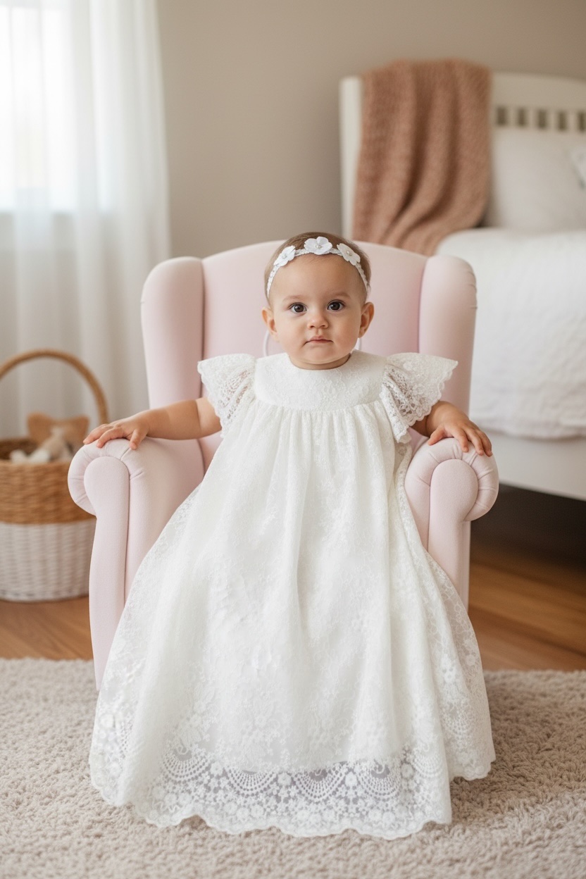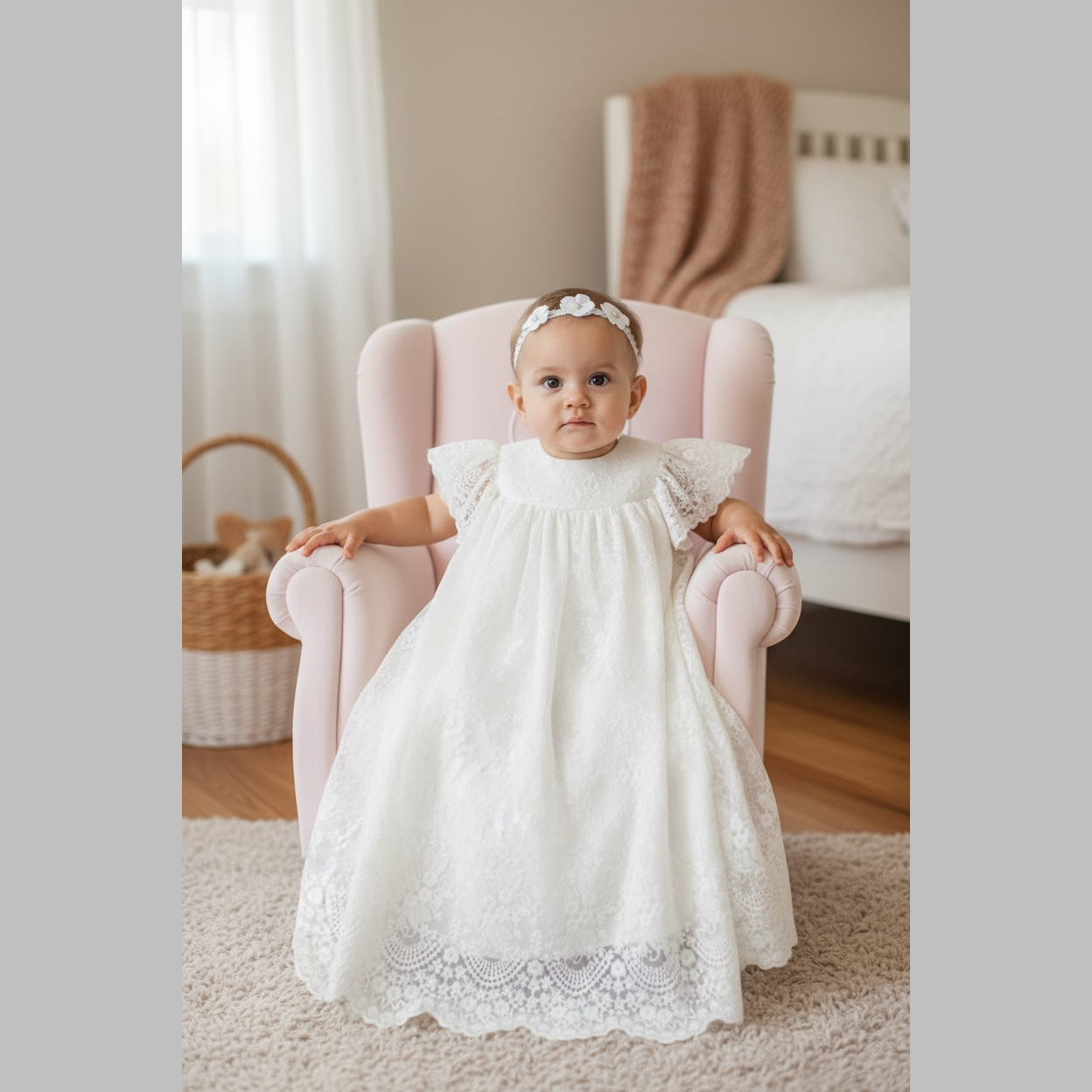 Sukienka wykonana z niezwykle subtelnego, bawełnianego haftu na delikatnym tiulu. Całość podszyta batystową podszewką dla komfortu dziecka. Krótki rękawek pozostaje przeźroczysty dla zachowania unikalnego charakteru sukienki. Kryty, długi suwak sprawi, że założenie sukienki nawet najmniejszej pociesze będzie bezproblemowe. Spódnica wysoko odcinana jest ukłonem do sukienek w stylu angielskim z zachowaniem praktycznego aspektu dzięki długości spódnicy. Organtynowa wstążka pomoże w regulacji sukienki pod każde dziecko. Każdy element wykonany jest z szlachetnego odcienia ecru dla zachowania spójności. Wszystkie odcienie ecru dostępnych u nas sukienek, bolerek oraz akcesoriów są przez nas starannie dobierane dla zachowania spójności stylizacji Waszych pociech w tak wyjątkowym dniu.