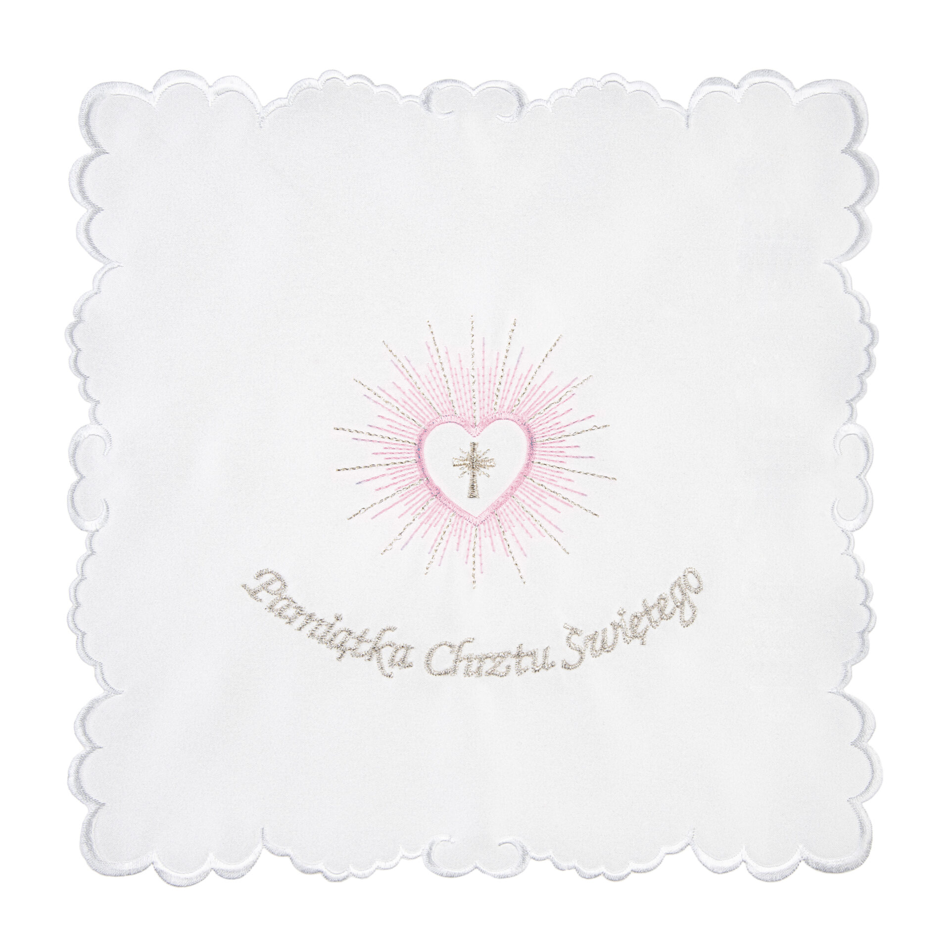 Możliwość personalizacji “Imię, data chrztu” dodatkowo płatnej 35 zł. Treść haftu wpisujemy w wiadomości do sprzedającego po wybraniu produktu “Usługa Haftowania szatki”.