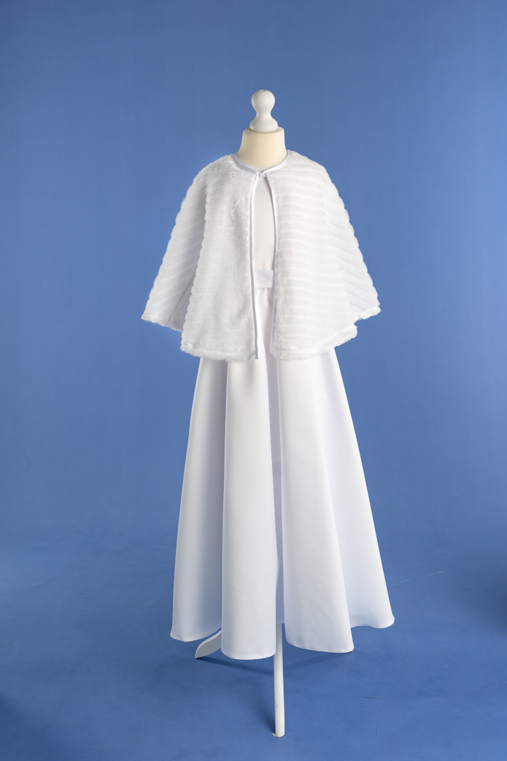 Biała pelerynka komunijna z futerka o wzorze norki