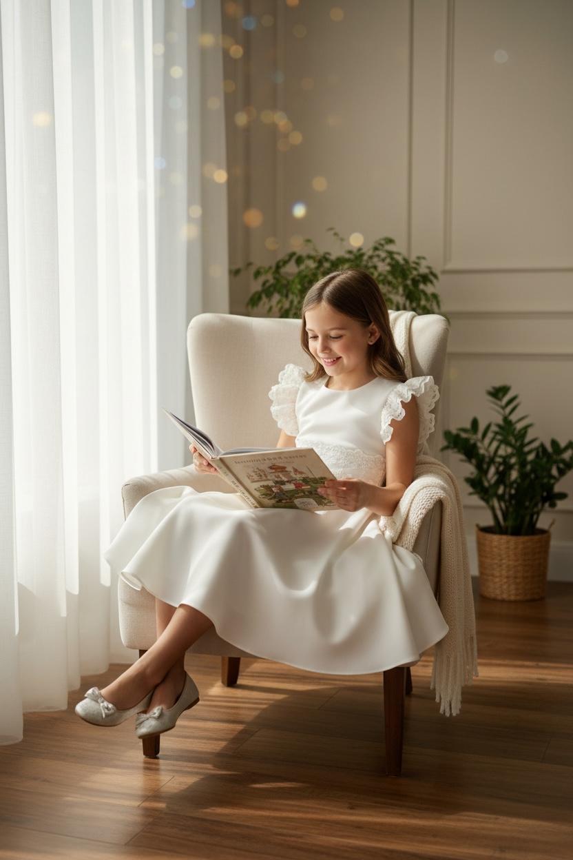 Każdy element wykonany jest z szlachetnego odcienia ecru dla zachowania spójności. Wszystkie odcienie ecru dostępnych u nas sukienek, bolerek oraz akcesoriów są przez nas starannie dobierane dla zachowania spójności stylizacji Waszych pociech w tak wyjątkowym dniu.